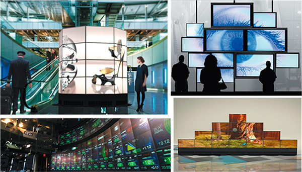 Современные технологии позволяют создавать видеостены различной высоты и сложности — от простых прямоугольных до лестничных, пирамидальных и цилиндрических. Видеостена, составленная из многих панелей, создаст потрясающий эффект цельности видеоизображения (тонкая, практически невидимая рамка позволит сконцентрировать все внимание зрителя на изображении, а не на рамке).